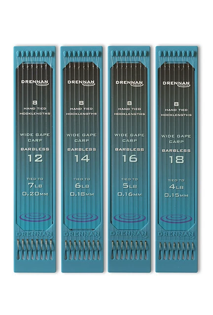 Weerhaakloze Wide Gape Carp Hooks To Nylon hebben een sterke haak met een brede kristallen bocht, perfect voor het richten op karpers. Een extra brede opening helpt zeker om meer vis aan de haak te slaan, vooral omdat het aas de neiging heeft om mooi in de platte, enigszins vierkante bocht te gaan zitten. Deze haak heeft een korte steel die grotendeels in het aas kan worden verborgen. De extra brede opening van dit haakpatroon houdt alle grote zachte aas zoals vlees buitengewoon goed vast. Nieuw concept, uiteindelijk handig 6 ”(15cm) – 8 individuele paalhaken aan nylon. Plat en recht onder lichte spanning opgeslagen zonder knikken in de mono zodat ze perfect presenteren en perfect vissen. Nauwkeurige kloppende knopen en consistente lussen deze nieuwe concept stokhaken aan nylon kunnen rechtstreeks van de vlakke platen worden gebruikt of worden opgeslagen in het bijpassende Hook Book of Hook Box.